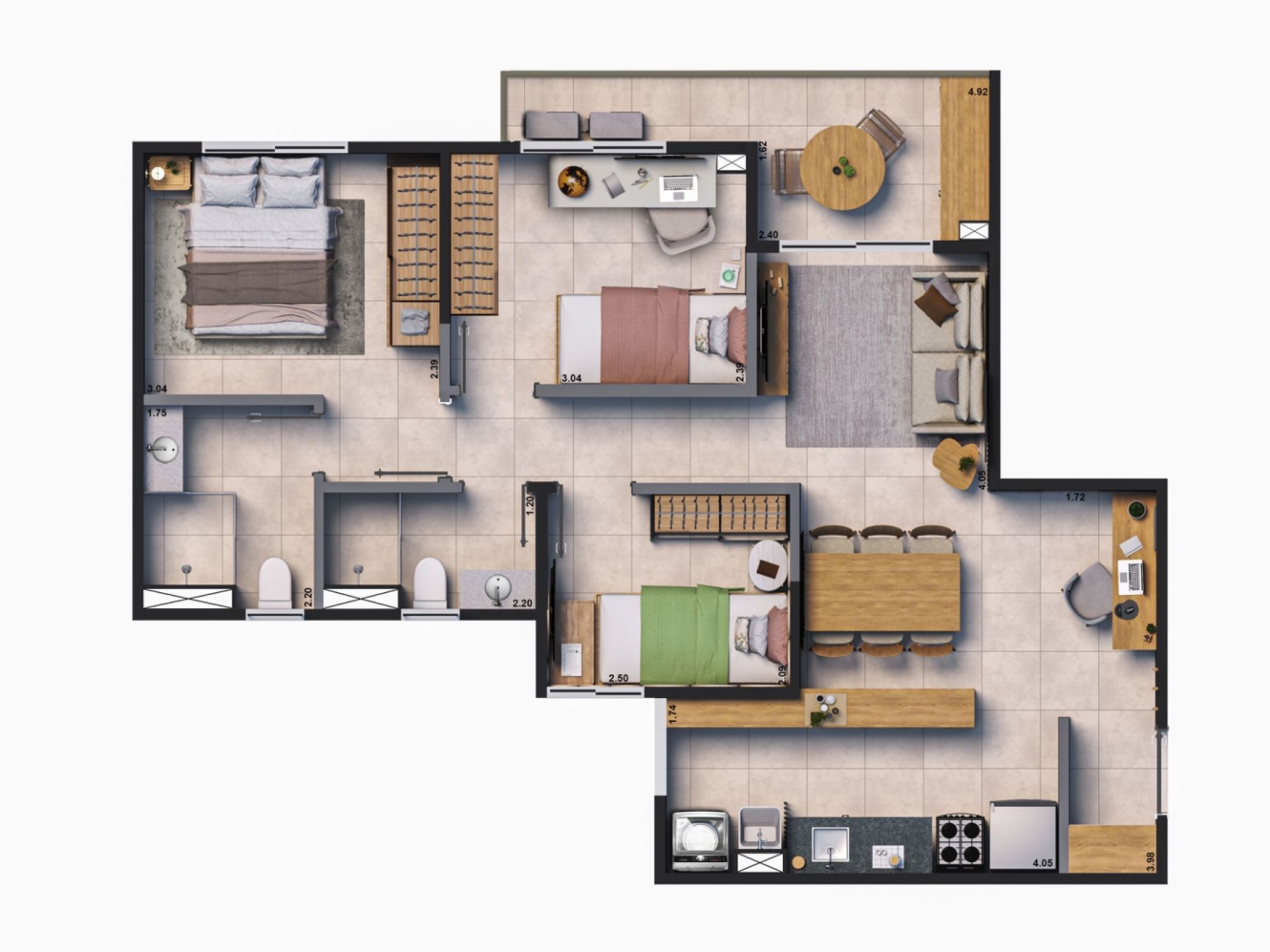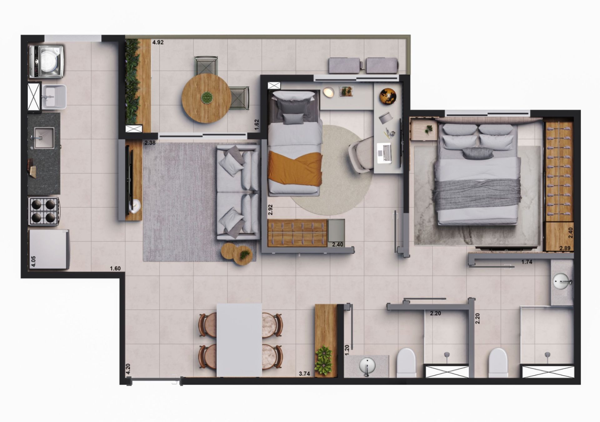 2 Quartos 2 Banheiros